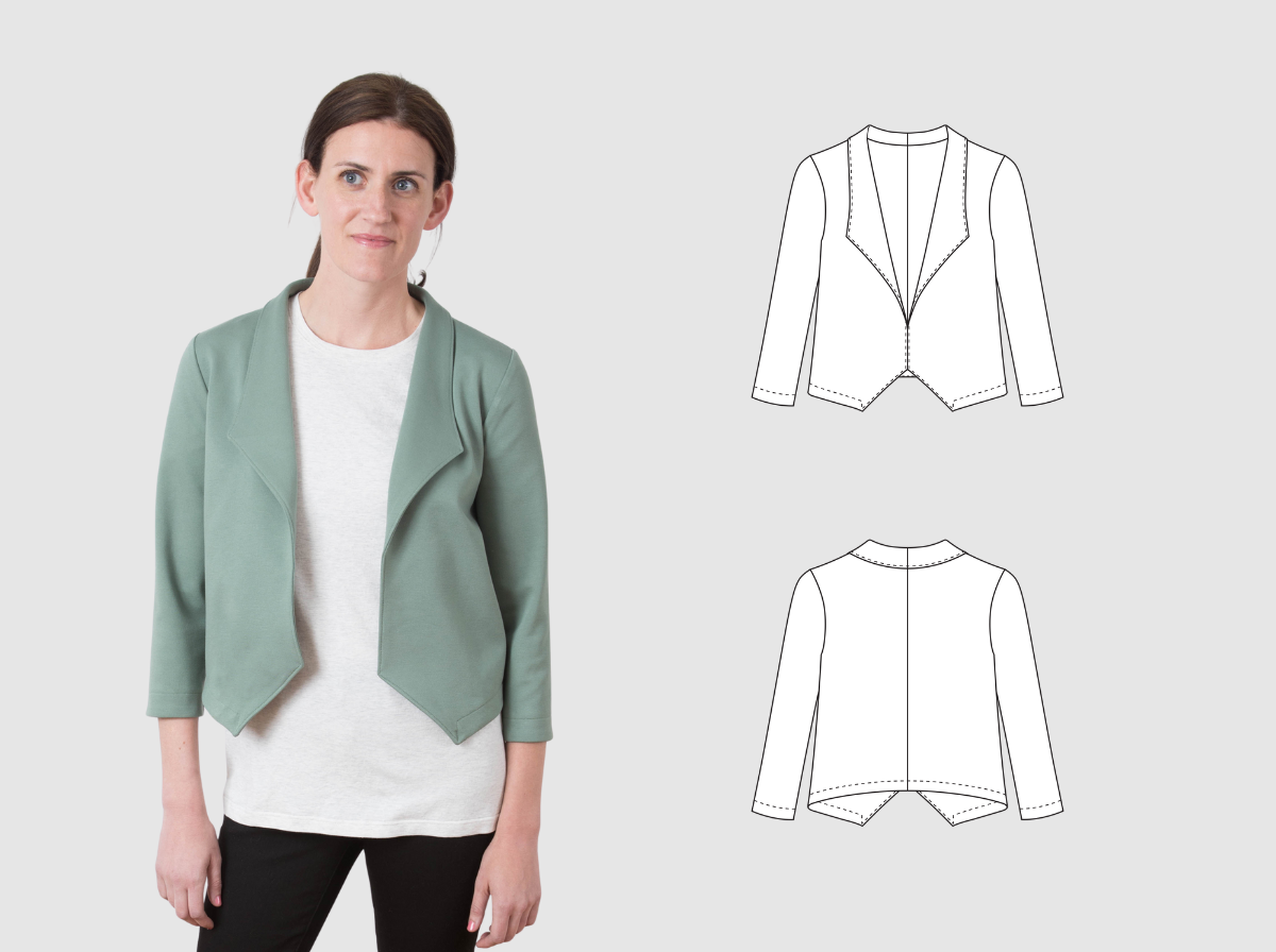 Master the casual-cool Morris Blazer with its gentle shawl collar and comfortable fit. This guide teaches you to work with stretch wovens or stable knits, construct the signature shawl collar, and set sleeves for the perfect drape. Perfect for year-round layering over everything in your wardrobe.