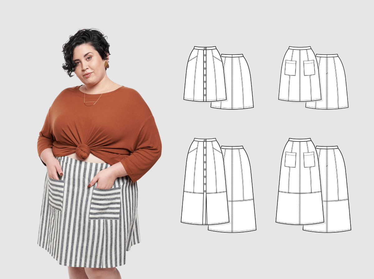 Create your perfect A-line skirt with this modern, 70's-inspired pattern featuring four different views. Learn to master the fly front zipper, construct inset and patch pockets, and work with fabrics from lightweight rayons to structured denim. Mix and match closure options and lengths for endless versatility.