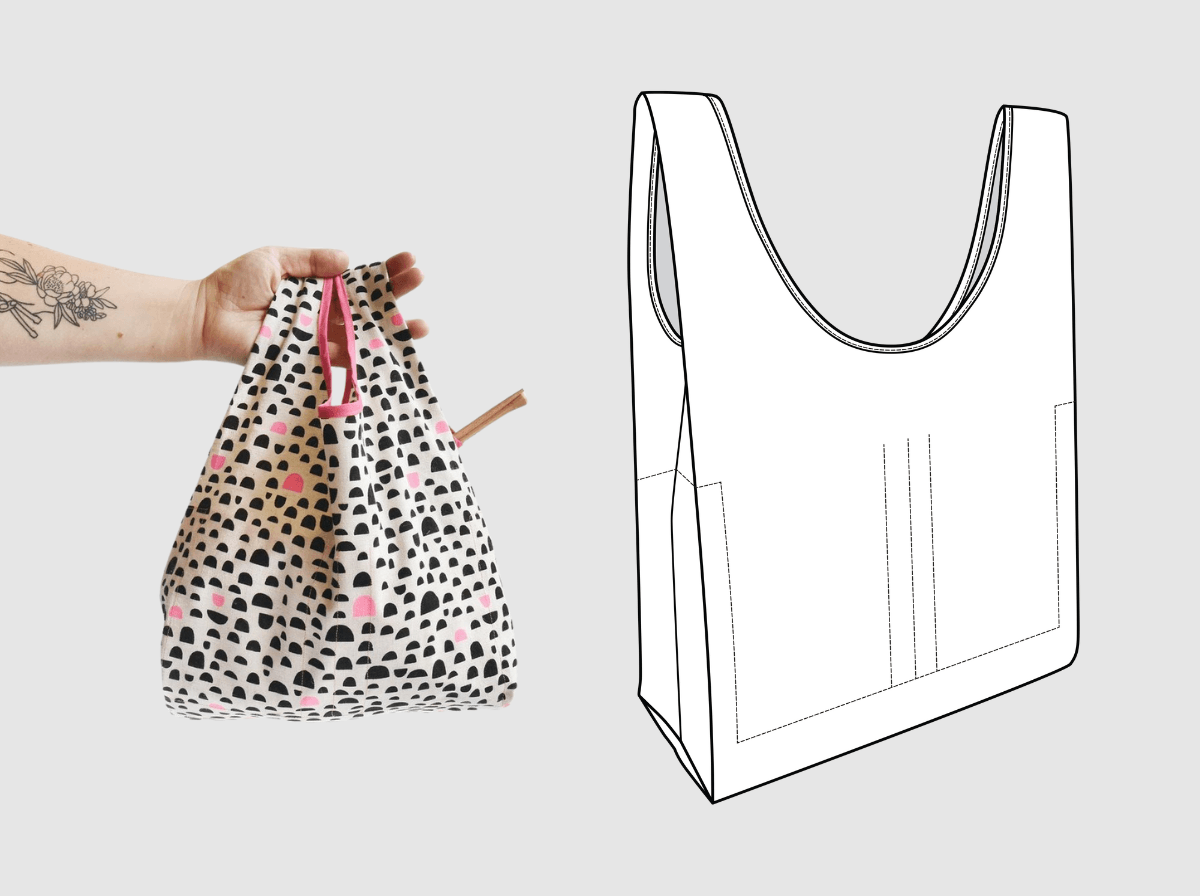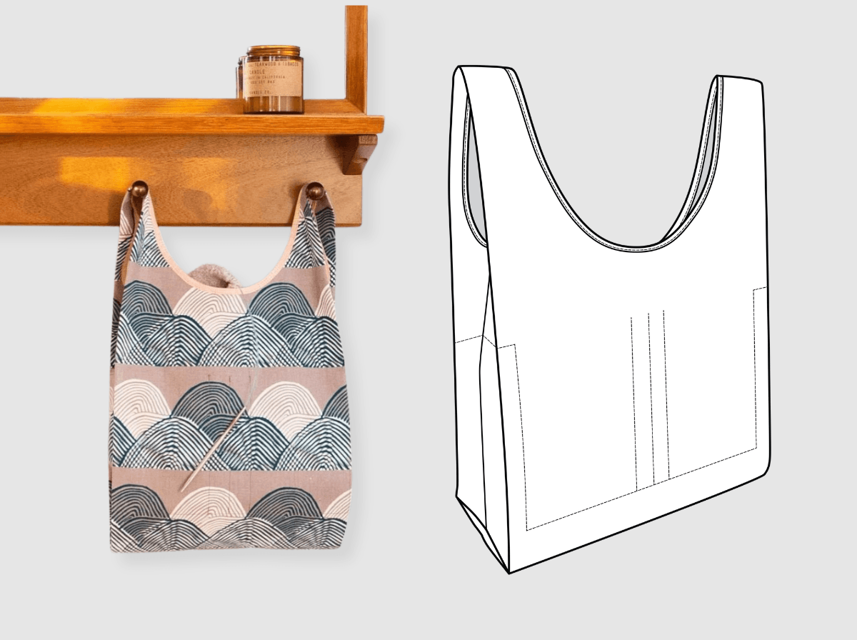 Sew this versatile project bag with step-by-step photo guidance. Learn construction techniques, bias binding, and how to create the roomy main compartment with organizing side pockets. Available in two sizes, this quick project uses less than one yard and works beautifully for knitting, sewing, travel, or creative pursuits.