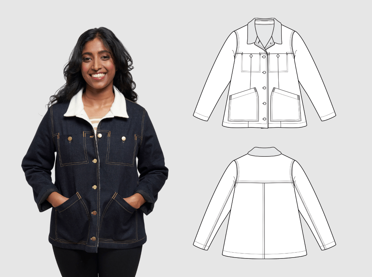 Tackle this workwear-inspired jacket with confidence! This guide walks you through signature topstitching techniques, unique inseam yoke pockets, bagging a lining, and collar attachment. Learn to work with denim, corduroy, and canvas while mastering the sherpa body lining and quilted sleeve lining combination.