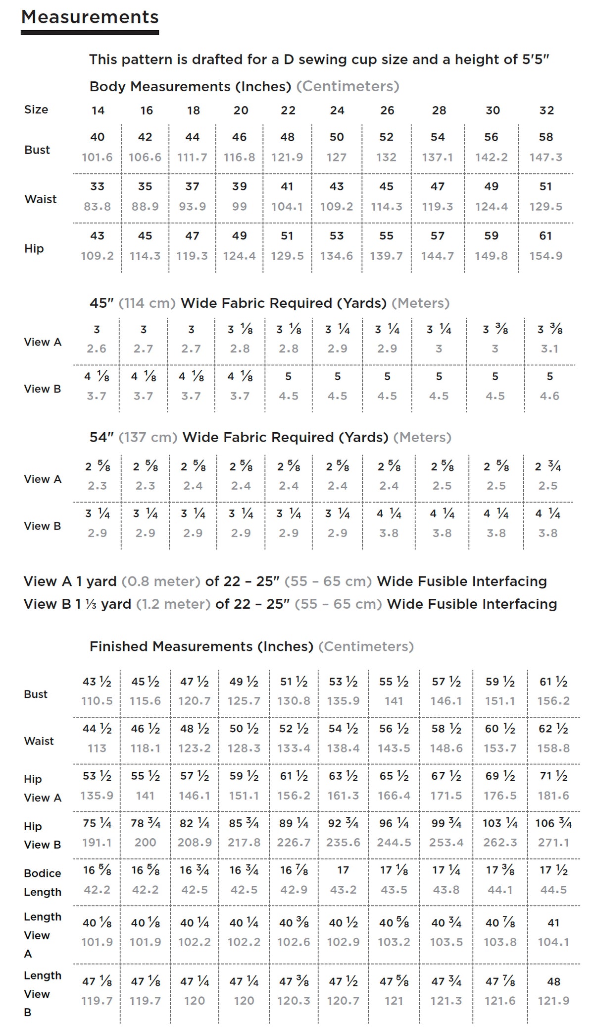 This table provides body measurements for women's clothing sizes 14 through 32. All measurements are provided in both inches and centimeters for bust, waist, and hip circumference. To find your size, measure your bust, waist, and hip, and match to the closest size in the chart.